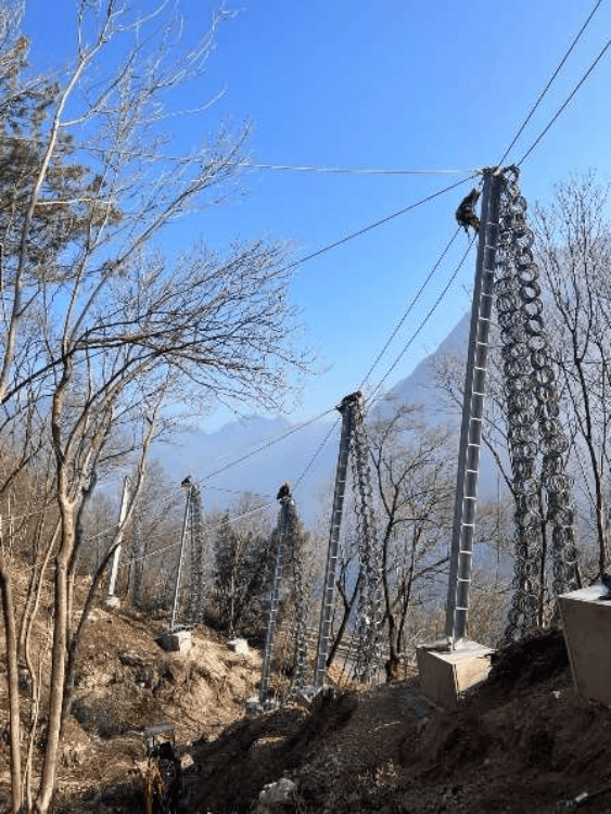 Reti paramassi fino a h 9.0 m (le più alte in Europa), classi d’energia da 500 kJ, 2’000 kJ, 3’000 kJ, 5’000 kJ, per un totale complessivo di 1’300 ml